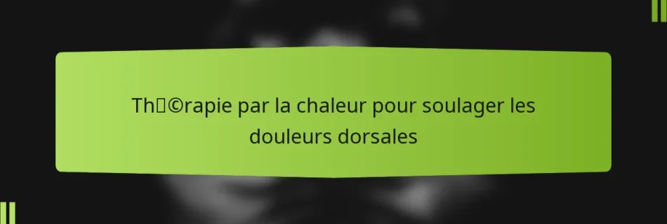 Read more “Thérapie par la chaleur pour soulager les douleurs dorsales”