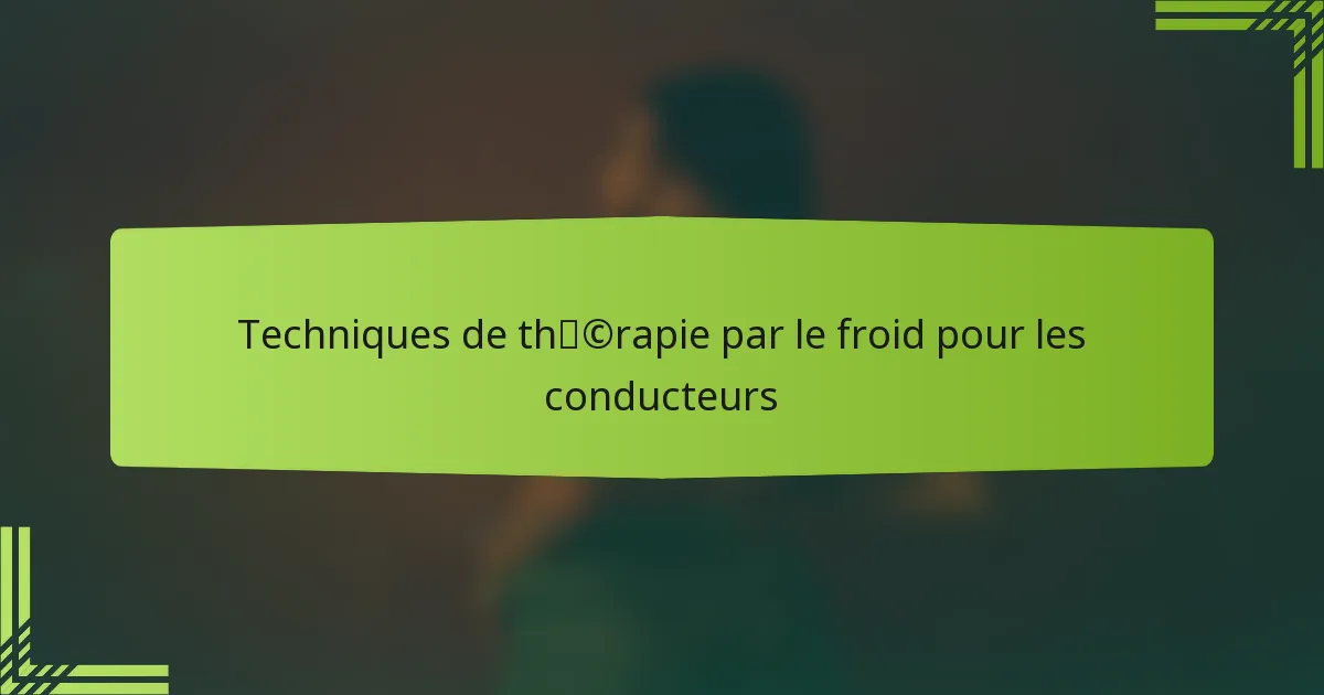 Quelles techniques de thérapie par le froid sont les plus efficaces pour les conducteurs ?
