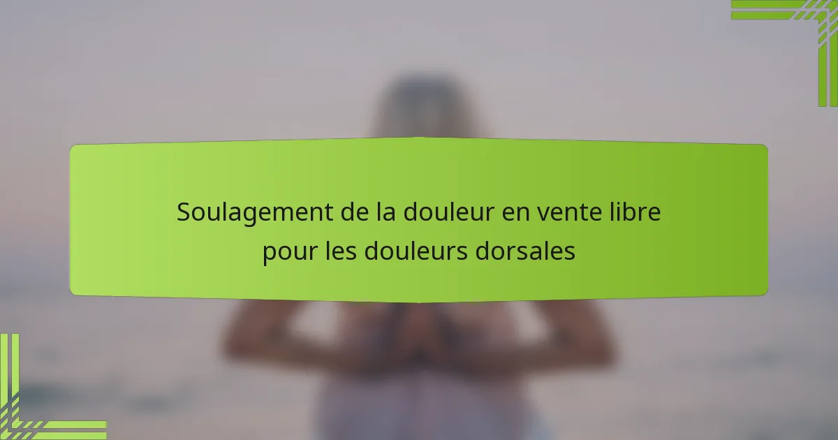 Les options de soulagement de la douleur en vente libre (OTC), y compris l’ibuprofène, l’acétaminophène et le naproxène, peuvent fournir un soulagement efficace pour les douleurs dorsales en réduisant l’inflammation et l’inconfort. Il est important de suivre les dosages recommandés et de prendre en compte les facteurs de santé individuels pour garantir une utilisation sûre et efficace. Être conscient des effets secondaires potentiels et des interactions peut également améliorer les stratégies de gestion de la douleur.