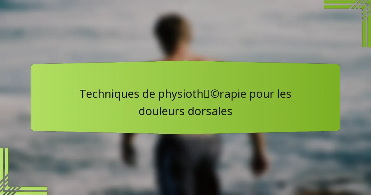 Quelles sont les principales techniques de physiothérapie pour les douleurs dorsales ?